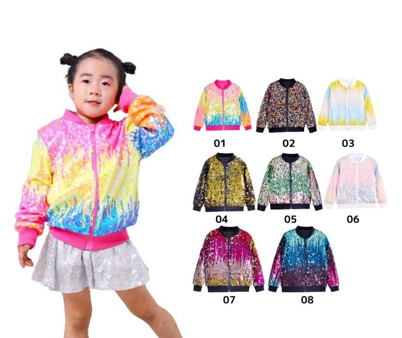 可愛いスパンコールジャケット 子供用 ダンス衣装 女の子 レトロ風 欧米風ブルゾン キッズスカジャン 虹柄 春秋冬アウター マルチカラー キラキラ パーカ ステージ衣装 ゆったり ジャズダンス衣装 カジュアル ヒップホップ衣装 団体服 社交ダンス パフォーマンス衣装 10色