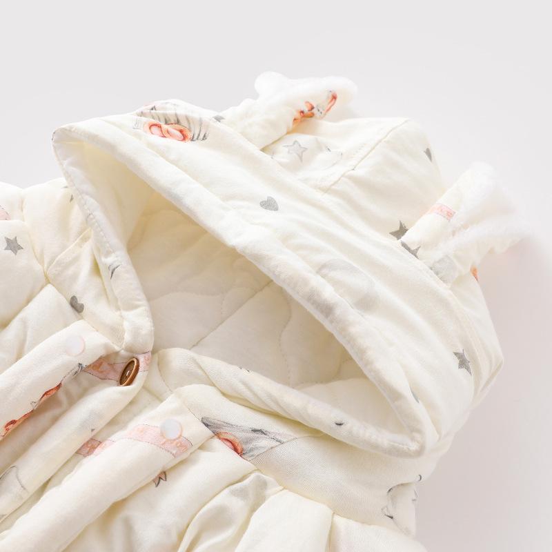 ベビーポンチョ 幼児 男女兼用 ケープ マント 袖付き 防風 キルティング 厚手 あったか フード付き おくるみ 綿 コットン 冬用 かわいい 動物柄