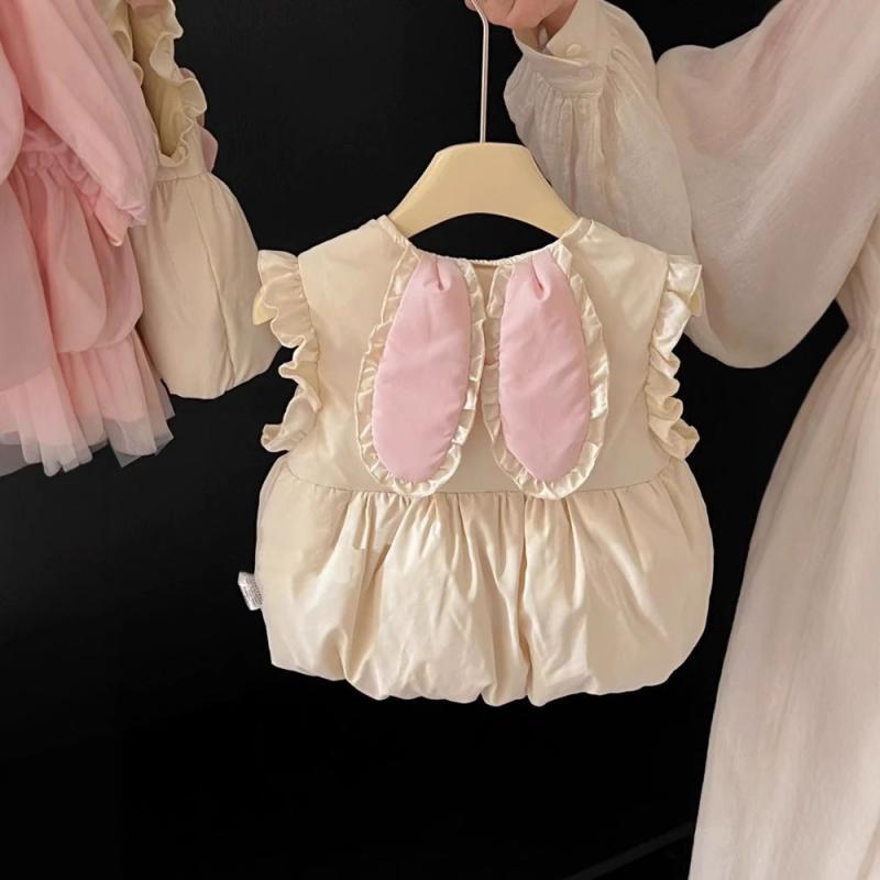 キッズ 女の子 ベスト ジレ 秋冬 中綿入り アウター 前開き うさ耳 カートゥーン 韓国風 おしゃれ 個性的 アイボリー 柔らかい肌触り ポリエステル 子供服 幼児服
