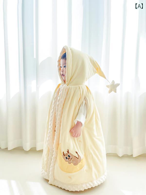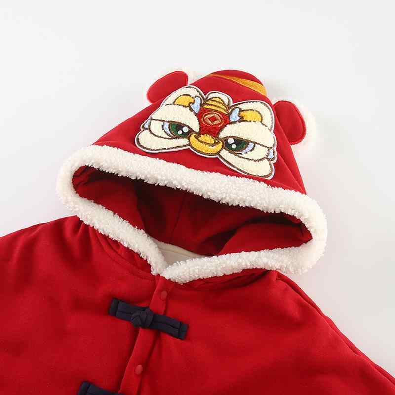 ベビー ポンチョ ケープ 秋冬 中国風獅子柄 加絨 厚手 綿製 80cm 100cm かわいい 赤ちゃん 子供用 アウター