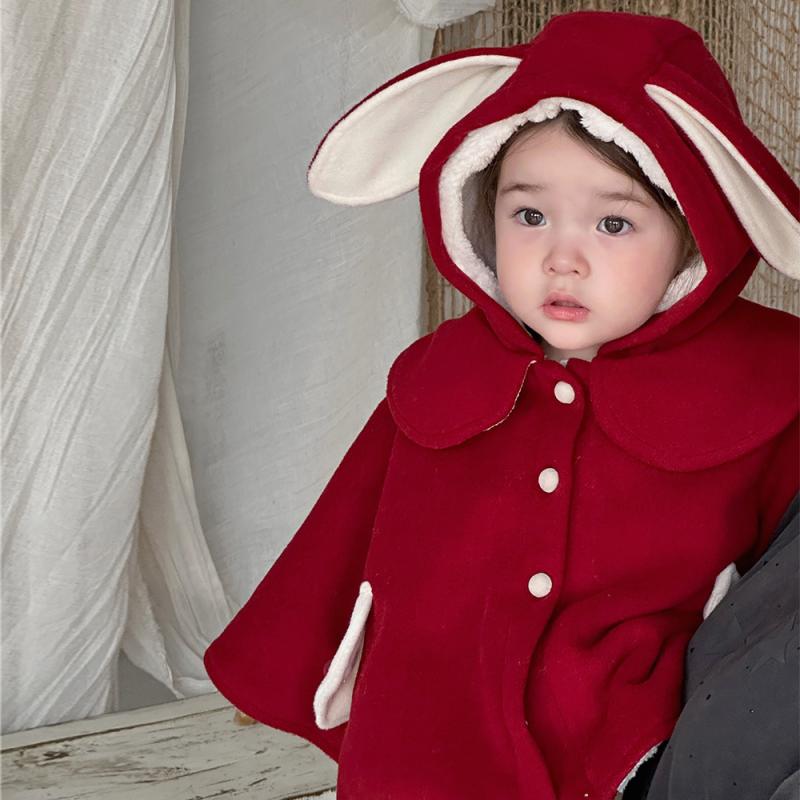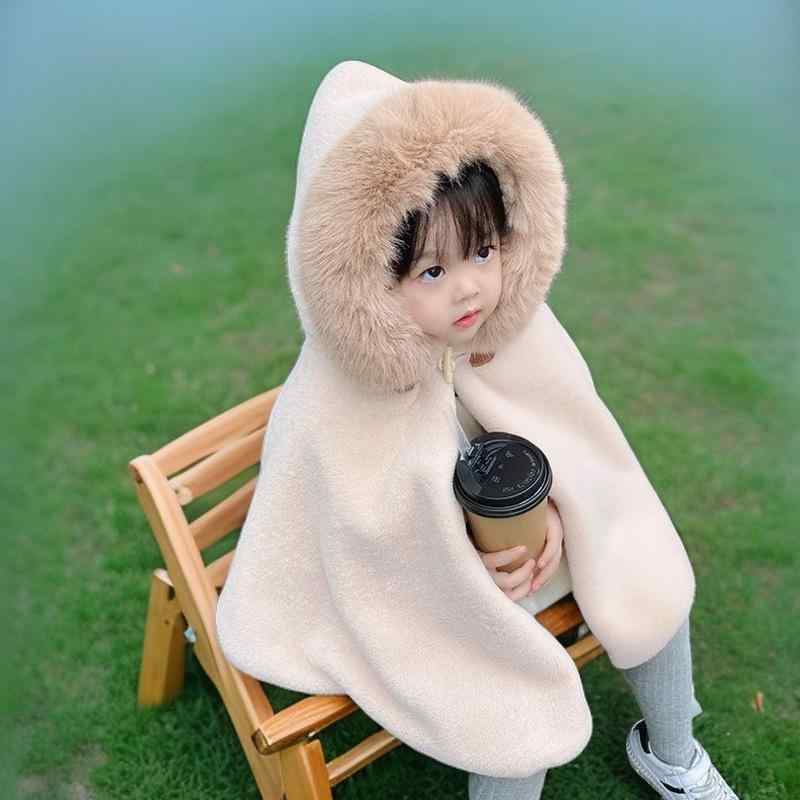 ベビー 女の子 ポンチョ ケープ アウター フード付き コート かわいい おしゃれ 暖かい 厚手 防寒 防風 秋冬 ポリエステル 前開き ボタン留め 韓国風 お出かけ ソフトタッチ