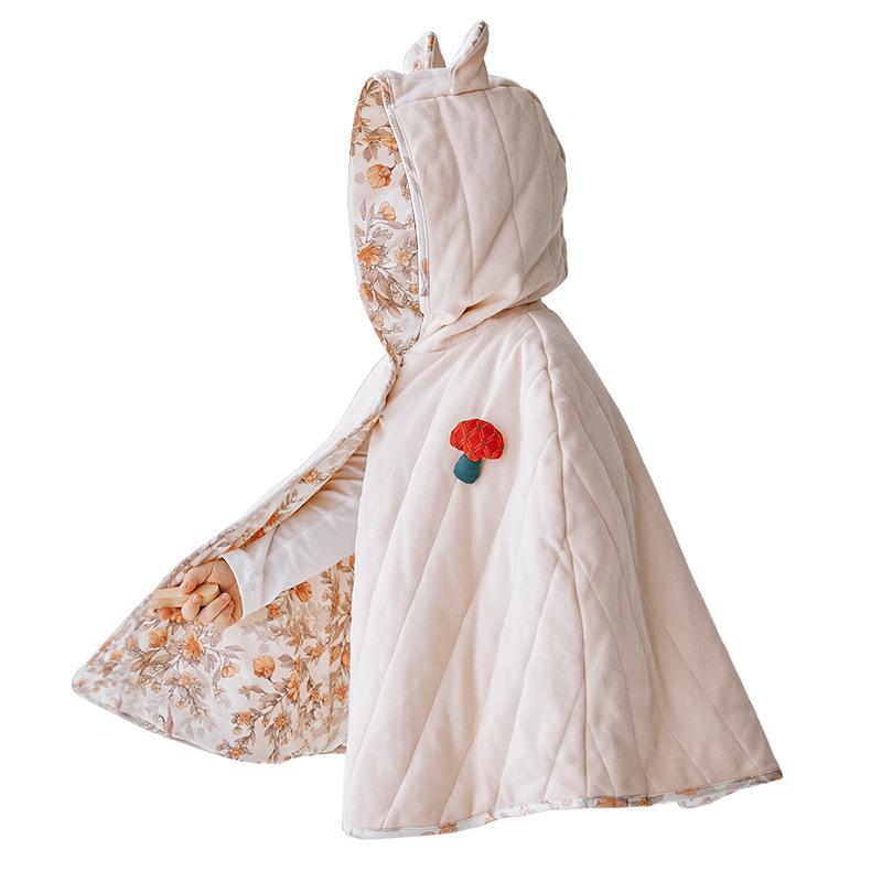 ・カテゴリ: ベビーケープ・性別: ユニセックス・: フード付き・主な素材: 綿55%・裏地素材: ポリエステル繊維・カラー展開: ベージュ・サイズ展開: S (0-1歳向け), M (1-2歳向け)