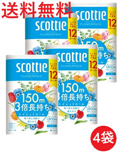 スコッティ フラワーパック 3倍長持ち 150m 4ロール シングル ×12パック トイレットペーパー scottie 送料無料 00295