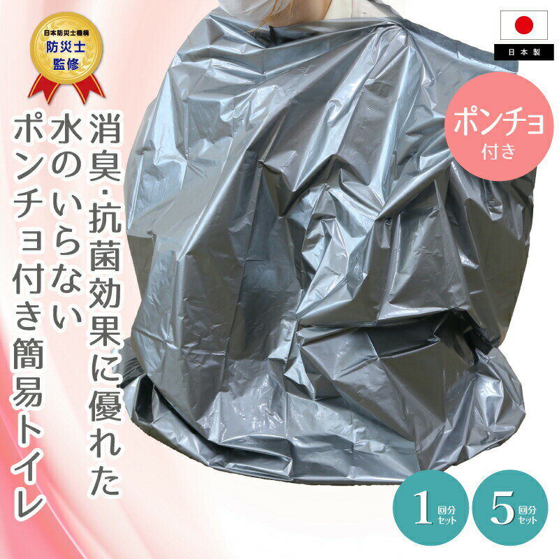 ポンチョ付き 簡易トイレ 1回分セット 5回分セット非常用 目隠し 着替え 防災グッズ 防災用品 災害 断水 アウトドア 会社 女性用 消臭 抗菌 防臭袋 凝固剤 携帯トイレ 防災トイレ 台風 洪水 コンパクト 簡単使用 防災 送料無料 日本製 SPT-1 13s963300290