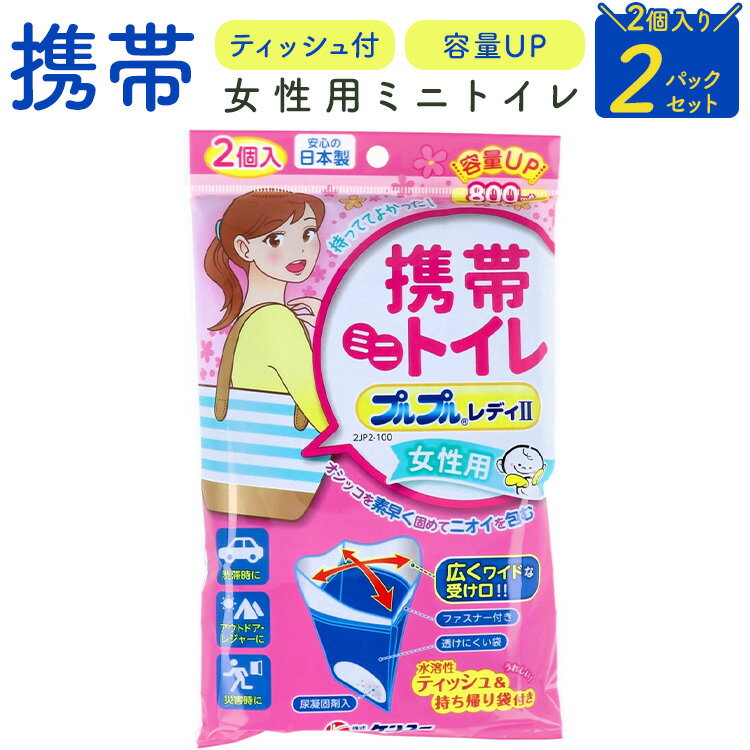 【BLACK FRIDAY!エントリーでP増倍】携帯トイレ プルプルレディ 女性用 2個入× 2個セット 計4個 ティッシュ付き 袋付き 大容量 800ml 女性 車 登山 持ち運び 広口 マチあり 自立式 消臭 凝固剤 使い捨て 防災セット 防災グッズ どこでもミニトイレ ワイド 簡易 固まる
