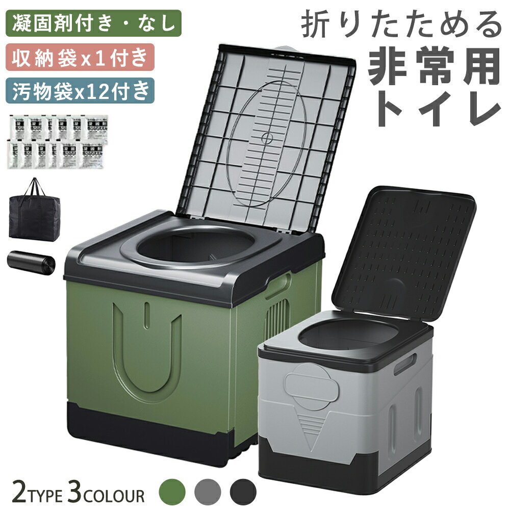 商品特徴: 【商品名】 携帯用ポータブルトイレ 【カラー】 ブラック/グレー×ブラック/グリーン×ブラック 【素材】 PP(水洗い可) 【サイズ(約)】 [折りたたみ時]27x31.5x11cm [組み立て後]27x31.5x29cm 【重さ(約)】 1.42kg 【耐荷重(約)】 150kg 【セット内容】 ・トイレ本体(蓋つき) ・収納袋 ・処理袋 ・凝固剤×12 【注意】 ※使用時の破損や事故等につきましては責任を負いかねます。 ※輸入品の為、輸送の際に生じるキズ・汚れ・箱潰れがある場合がございますが新品です。 ※サイズ・重量は、多少の誤差が生じる場合がございます。 ※あくまで画像はイメージですので、商品改良の為パッケージや一部仕様が少し変更になる場合もございます。 ※お使いのブラウザや設定により、画像と実際の商品との若干の色の違いが生じる場合がございます。 メーカー希望小売価格はメーカーサイトに基づいて掲載しています メーカー希望小売価格はメーカーサイトに基づいて掲載しています メーカー希望小売価格はメーカーサイトに基づいて掲載しています簡易トイレ 災害用 非常用 トイレ 折りたたみ式 ポータブルトイレ 排泄袋つき 携帯トイレ 防災 トイレセット 防災グッズ 防災用品 災害対策 停電 断水 防災士監修 介護 アウトドア キャンプ 渋滞 凝固剤付きセットも 災害用 女性 女性用 車 災害用トイレ 携帯 トイレ 1年保証 もしもの災害の備え・防災に!場所を取らない折りたたみ式の非常用トイレ。大人も安心の座面耐荷重120kg、頑丈な作りで普段は踏み台・イスにも
