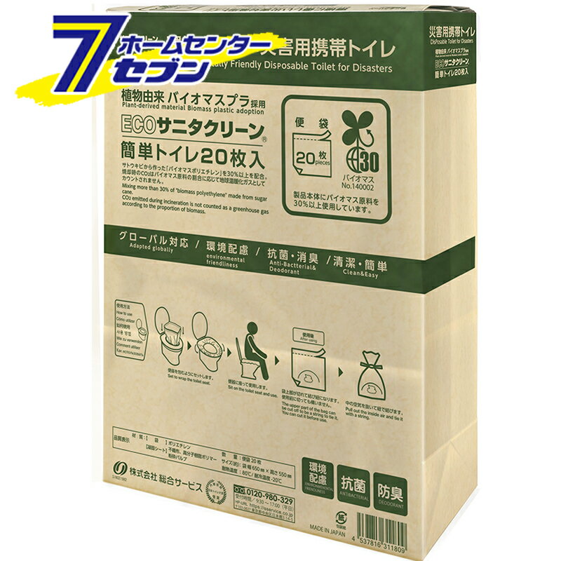 災害用トイレ 20枚入 ECOサニタクリーン簡単トイレ (簡易トイレ 携帯トイレ 地震 非常用 緊急 避難生活 防災用品 防災グッズ 災害時 断水時 アウトドア 介護 女性用 男性用 )