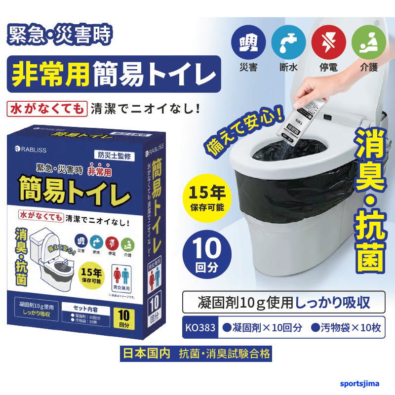 防災グッズ 簡易トイレ 10回分 防災士監修 非常用トイレ 防災トイレ KO383 防災グッズ 凝固剤 災害用 介護 携帯トイレ 消臭 抗菌 長期保存 半永久 15年保存 大便対応 災害用トイレ 防災用トイレ 災害時 断水時 アウトドア 介護 災害用トイレ 女性用 男性用 備蓄