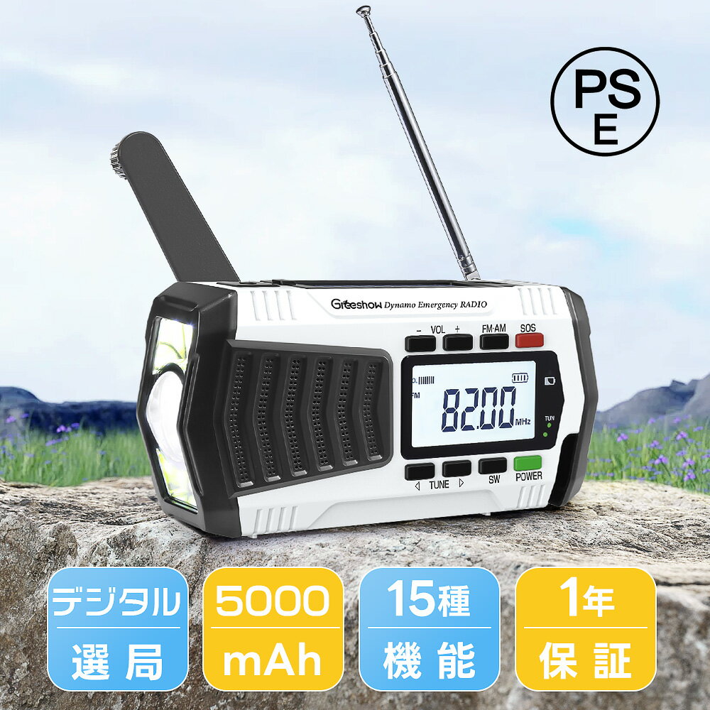 \クーポンで4580円★機械音痴でも大丈夫/ Greeshow 防災ラジオ 多機能 5000mAh 手回し ソーラー充電 イヤホンジャック付 ポータブルラジオ 防災グッズ AM/FM/SW ワイドFM対応 携帯ラジオ スマホ充電 USB LEDライト SOS 生活防水 地震/台風/停電対策 災害用 GS-2901
