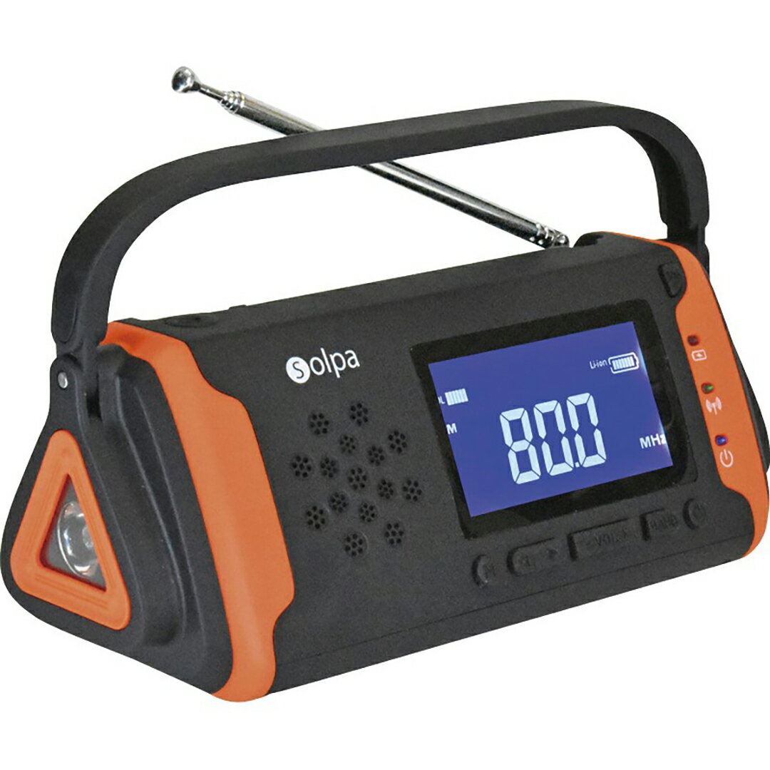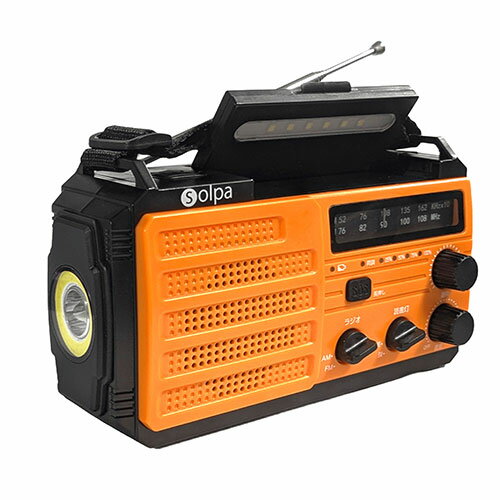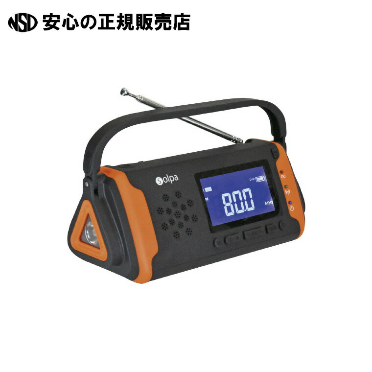 配送区分:SSサイズ【特選商品】solpa 手回し・ソーラー蓄電ラジオ チャージオ ラムダ SL-091※ご注文手続き後、当店より発送予定日または取寄商品の在庫有無・納期を記載したご注文確認メールをお送りいたしますので必ずご確認をお願い致します。 こちらの商品はお取り寄せの商品となり、通常、土日祝を除く3営業日前後での発送予定となります。(詳細納期はご注文後にメールにてご案内致します。) ※発注手配の可否をメールにてご確認させて頂く場合がございます。必ず当店からご案内するメールをご確認ください。 ※商品の手配ができない場合や、発注手配可否の確認が取れない場合には誠に申し訳ございませんがキャンセルとさせていただきます。 いつも使える もしもに頼れる1台5役 普段使いはもちろん、災害・緊急時の備えとして持ってて安心の「手回し/ソーラー蓄電ラジオ」。 4通りの充電方法により蓄えた電力で、ラジオ放送の受信、スマートフォンの充電や、懐中電灯、SOSアラームと、コンパクトな本体にもしもに頼れる機能が満載。付属のケーブルを接続してオーディオ機器のスピーカーとしても使用出来ます。