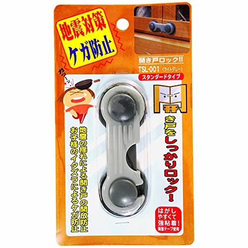 ◆商品名:和気産業(Waki Sangyo) 開き戸ロック スタンダードタイプ ライト 引き出し 食器棚 地震 1個入 グレー 38×100×18mm TSL-001〈材質表示〉本体:ABS樹脂・ナイロン樹脂 粘着剤:アクリル系製造国:韓国●ご使用上の注意:気温10℃以上のときに作業してください。(低温では本来の粘着力を発揮しません。)●ご使用上の注意:きれいにはがせる両面テープを使用していますが、木材や紙などの軟らかい材質の扉に貼り付けると、取り外す時に表面を破損する恐れがありますので予めご了承ください。●ご使用上の注意:凹凸面、ザラザラ面、曲面等の粘着剤がつきにくい面には取付出来ません。●ご使用上の注意:屋外や浴室などの水のかかる場所や直射日光のあたる場所での使用はしないでください。●ご使用上の注意:ロックした状態で無理に開けようとすると製品本体が破損する場合があります。十分にご注意ください。●ご使用上の注意:本製品は地震の揺れの際の開き戸開放、お子様のイタズラによるケガ等をなるべくなくすよう工夫した商品です。本製品を使用しての事故、破損に関する保証は致しかねますので予めご了承ください。敬老の日 補聴器 防災 月見 読書 スポーツ 運動会 紅葉狩り キャンプ 登山 シルバーウィーク