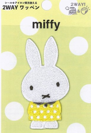 キャラクター 刺しゅう ワッペン ミッフィー ( ドット柄 ワンピース イエロー 黄色 系 ) ( 大きさ 約7×4cm 1枚入り ) ( ミフィー ミィフィー キャラクターワッペン アップリケ アイロン 刺繍 かわいい マーク キッズ こども )