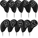 ゴルフアイアンカバー マグネット ウェッジカバー クラブヘッドカバー セット 10pcs(4-9,P,A,S,X) 両面銀色番号 黒い合成皮革
