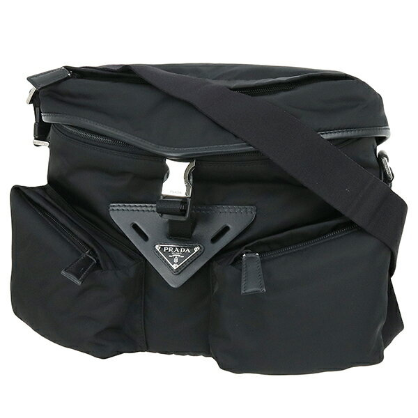 【超美品】 プラダ ショルダーバッグ リナイロン レザー 三角ロゴ ブラック 黒 トライアングルロゴ PRADA プラダ クロスボディバッグ メンズ レディース ナイロンショルダーバッグ バック BAG ブランド 中古