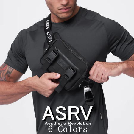 ASRV エステティックレボリューション バッグ スポーツ ジムバッグ 海外ブランド ランニングバッグ ショルダーバッグ ボディバッグ ジムバッグ チェストバッグ ウォータープルーフ クロスボディバッグ サイズ:17.8x12.7x3.8cm フィジーク バッグ ボディビル 【単品】