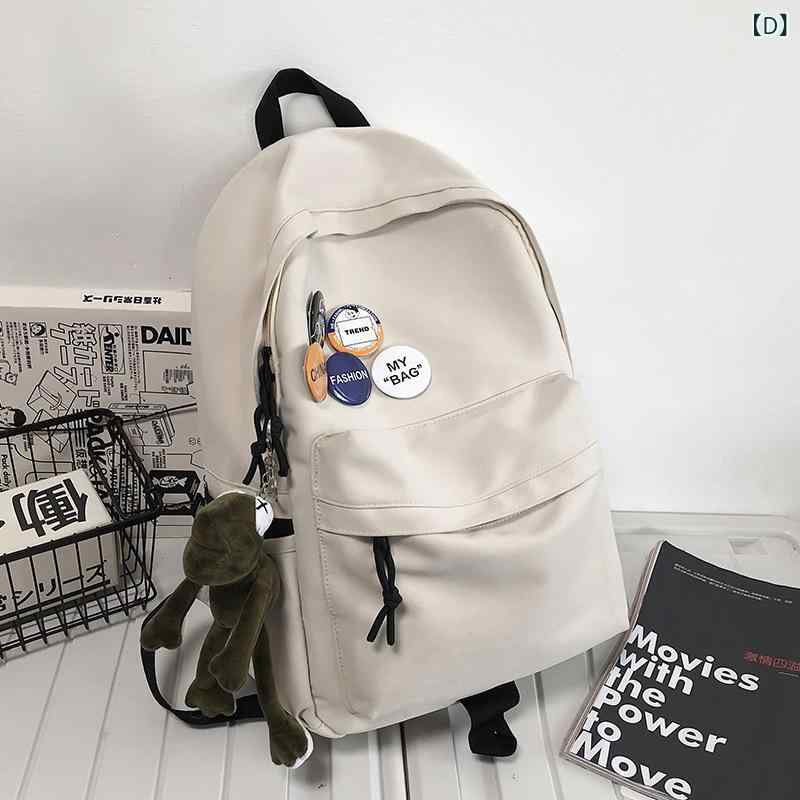 リュックサック 男女兼用 小学生 中学生 高校生 スクールバッグ ナイロン 大容量 通気性 無地 白 黒 青 ラウンドバッジ付き 恐竜 キーホルダー