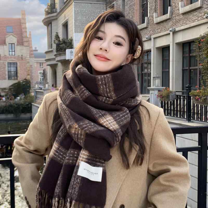 マフラー レディース おしゃれ 冬 厚手 防寒 チェック柄 大判 ストール ひざ掛け かわいい レトロ 学生