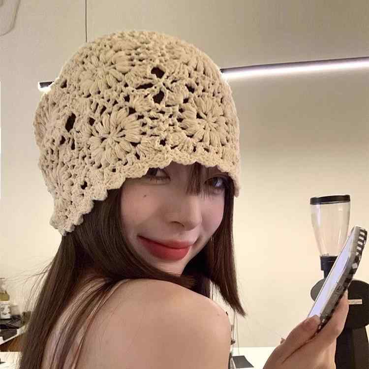 ・素材: コットン100%・カラー: ベージュ、ブラウン、ブラック、ブルー・サイズ: フリーサイズ・帽頂スタイル: 丸頂・帽檐スタイル: 無檐・機能: 通気性・流行要素: 網状・スタイル: かわいい、甘め、森系・スタイル分類: 清新甘美・流行要素分類: 形状/パターン