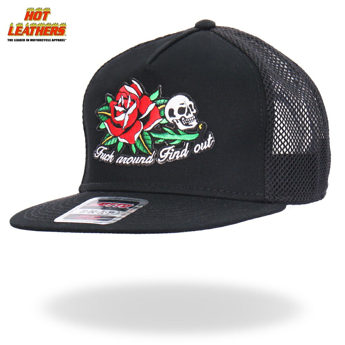 Hot Leathers キャップ ハット バイカー [F-ck Around Find Out Snapback Hat] ローズ 薔薇 バラ スカル 英字 黒 メッシュ スナップバック調節 ベースボールキャップ トラッカーハット 野球帽 帽子 米国ホットレザー直輸入 オートバイ ツーリング バイクに!
