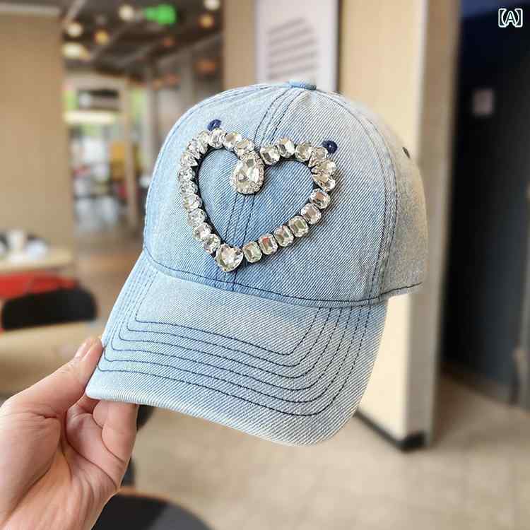レディース ハートビジューデニムキャップ 帽子 ウォッシュド UV対策 調節可能 小顔効果 フェミニン おしゃれ かわいい 韓国 快適 デート 外出 イベント フェス レジャー アウトドア 普段使い使い