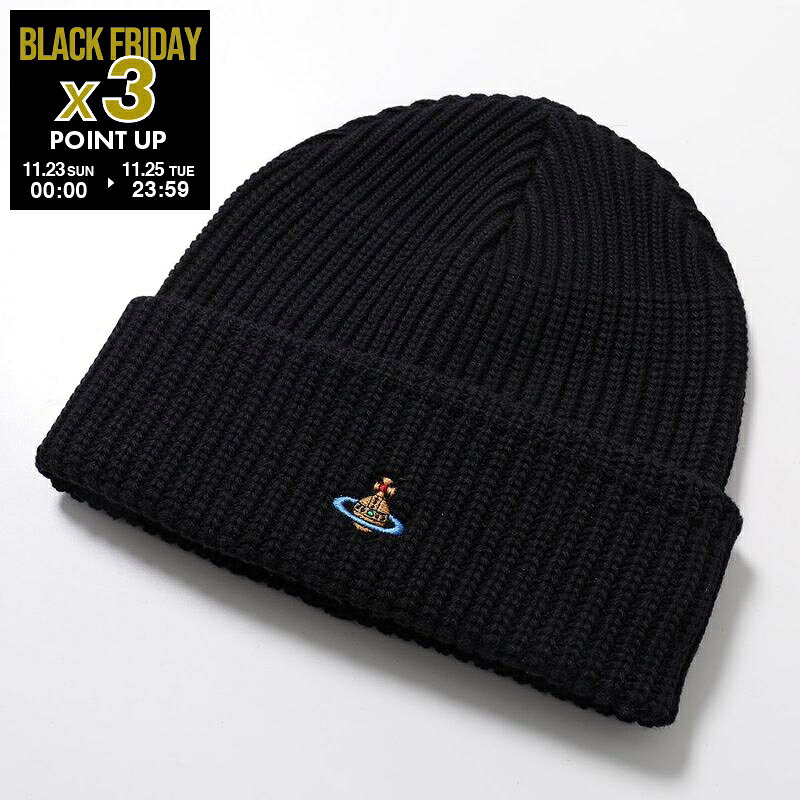 Vivienne Westwood ヴィヴィアンウエストウッド ニット帽 8102000A K0065 メンズ ウール ニットキャップ オーブ 刺繍 ビーニー 帽子 N401/BLACK
