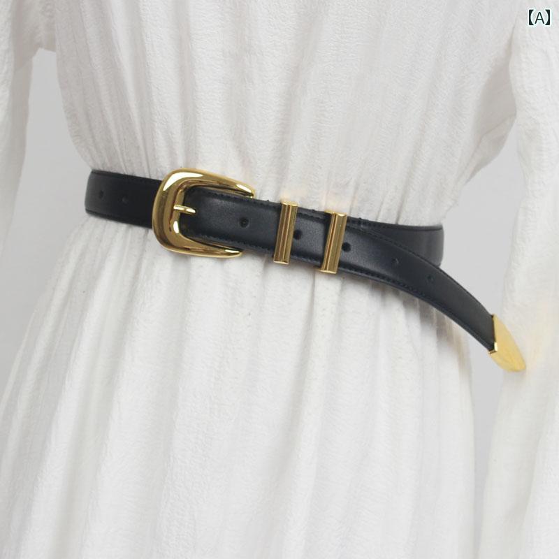 ベルト レザー レディース スタイル マッチング ジーンズ ソフト ハイエンド 牛革 シンプル