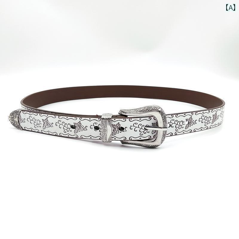 レディース ベルト カジュアル アメリカ エンボス 加工 レトロ Y2K ホワイト ベルト レディース スタイル マッチング アクセサリー ズボン センス