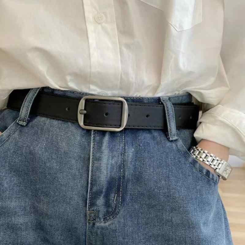 ベルト メンズ レディース 高級感 レトロ ヴィンテージ 合皮 レザー 学生 デニム ジーンズ カジュアル フォーマル スタイル マットシルバー 合金 ピンバックル