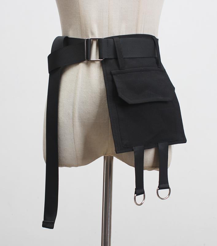 ベルト バッグ レディース アメリカ ファッション ロング スウェットシャツ ジャケット 生地 装飾 小さめ ウエスト バッグ クール ベルト ブラック アバンギャルド