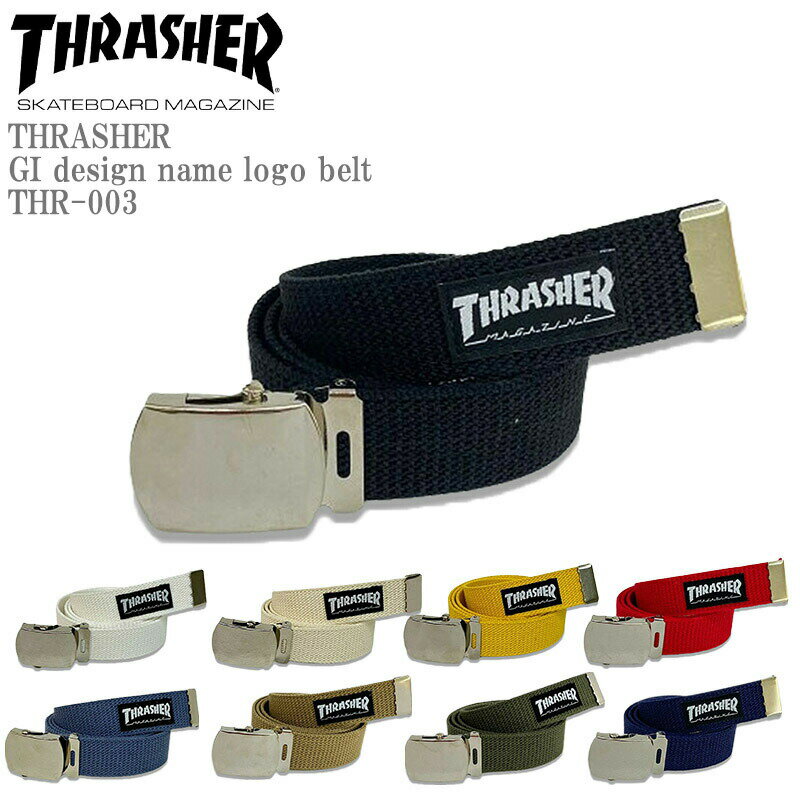 |  THRASHER スラッシャー GI design name logo belt THR-003 GIデザインベルト 織ネーム スケーター ファイヤーロゴ メンズ レディース ユニセックス