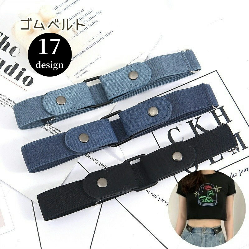 送料無料 ゴムベルト ループフックベルト レディース バックル付き スナップボタン 伸縮 サイズ調節可能 デニム調 簡単装着 ノーバックル 女性用 婦人用 無地 楽ちん スッキリ ファッション小物