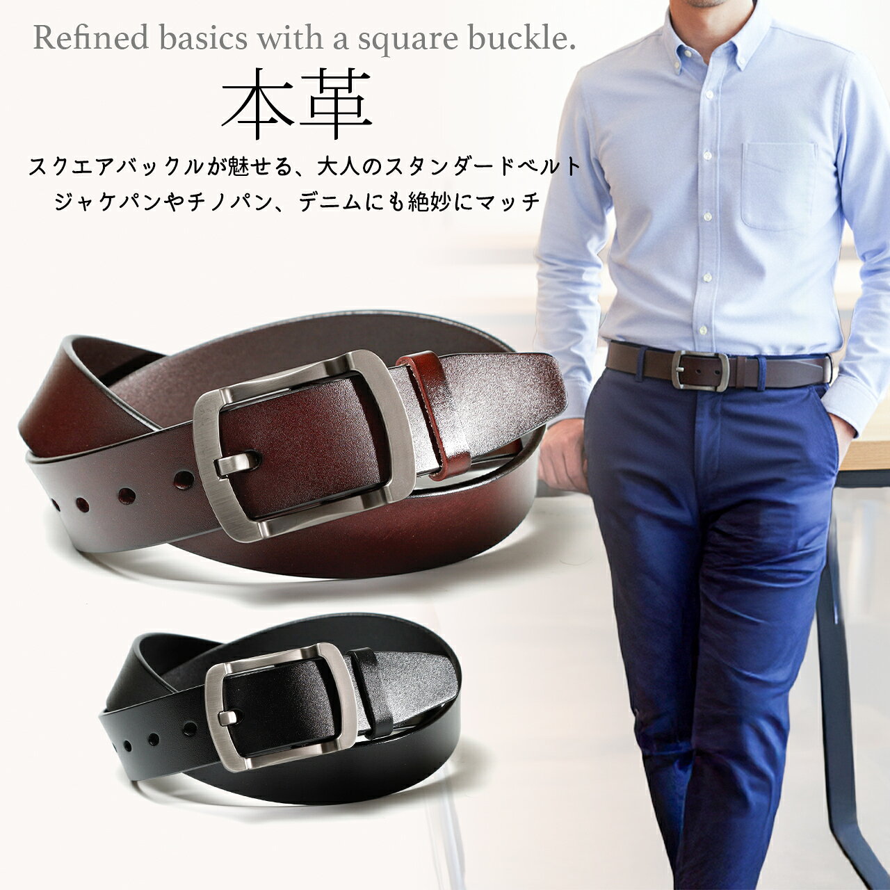 ベルト メンズ カジュアル 本革 ビジネス レザーベルト 主張しすぎない上品なスクエアバックル やや太め太い 幅広 37mm シンプル デニム ジーンズ ジーパン チノパン メンズベルト 普段使い 紳士ベルト 大人 長さ調整調整 おしゃれ 黒 ブラック ブラウン