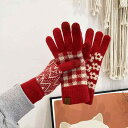 手袋 レディース おしゃれ 赤 秋冬 防寒 暖かい 厚手 ニット 五本指 北欧風 チェック柄 カジュアル