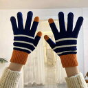 手袋 レディース おしゃれ ニット 手編み タッチパネル ボーダー 柄 韓国 防寒 冬 厚手 暖かい 学生 カジュアル