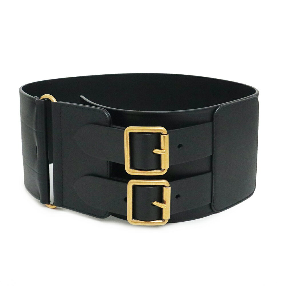 【未使用 展示品】クリスチャンディオール Christian Dior マキシ ウエスト ベルト カーフスキン レザー 75 ブラック 黒 ゴールド金具 B0098CMIV