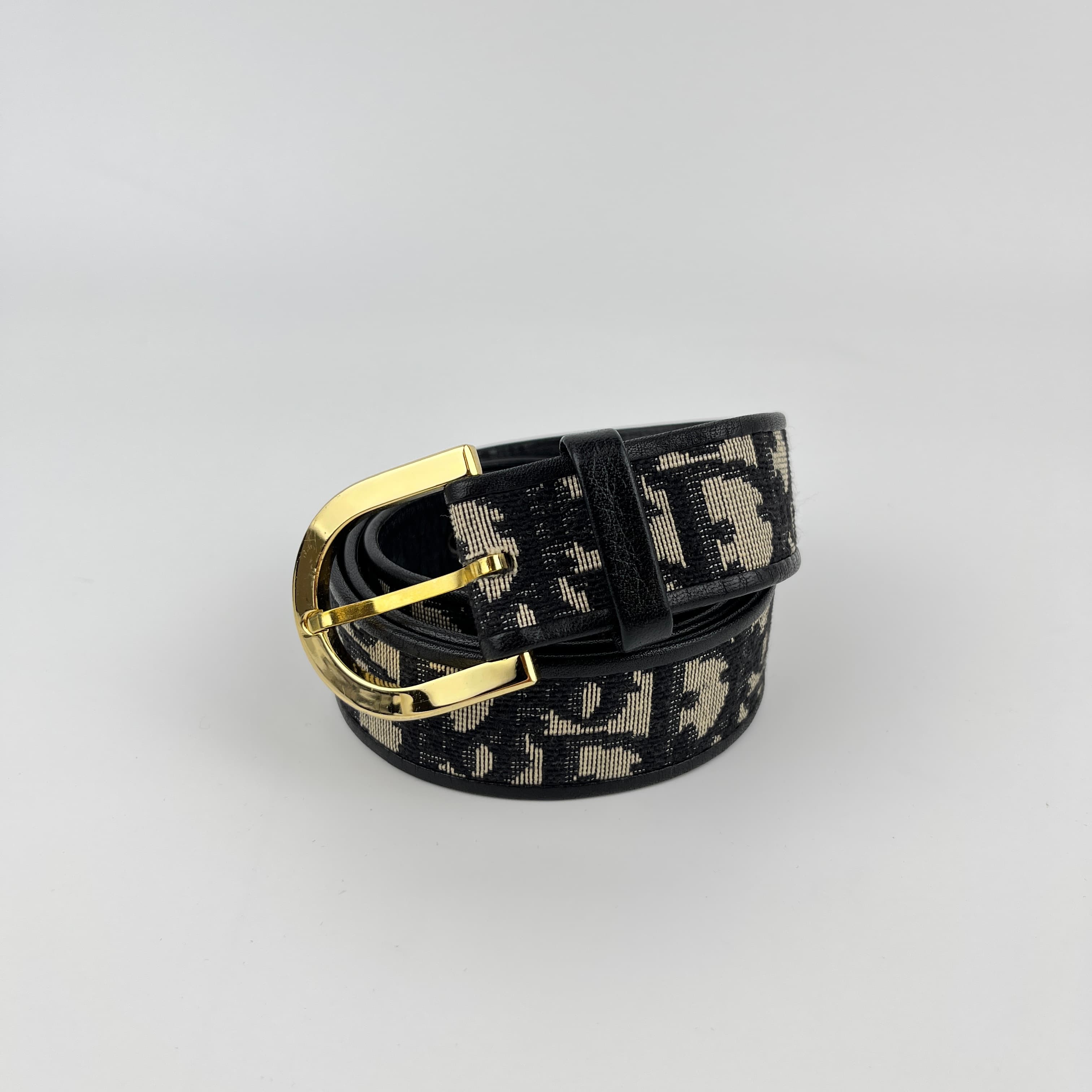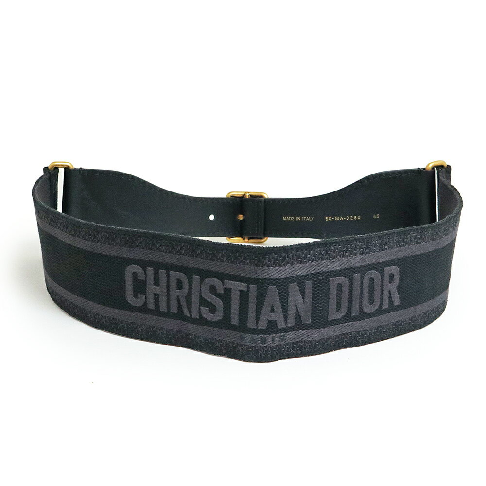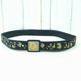 ディオール トロッター ベルト ネイビー ブラック キャンバス レザー レディース Dior 【中古】