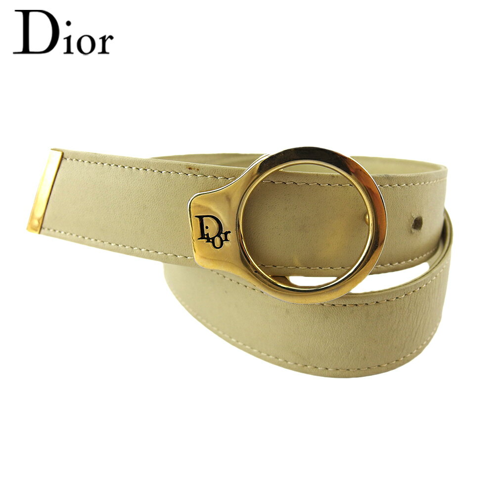 【ブラックフライデー30%OFFクーポン】ディオール ベルト ♯65 26サイズ レディース トップ式バックル ロゴバックル ベージュ ゴールド レザー×ゴールド金具 Dior T20374 【中古】 ブランド ハイブランド ヴィンテージ 送料無料