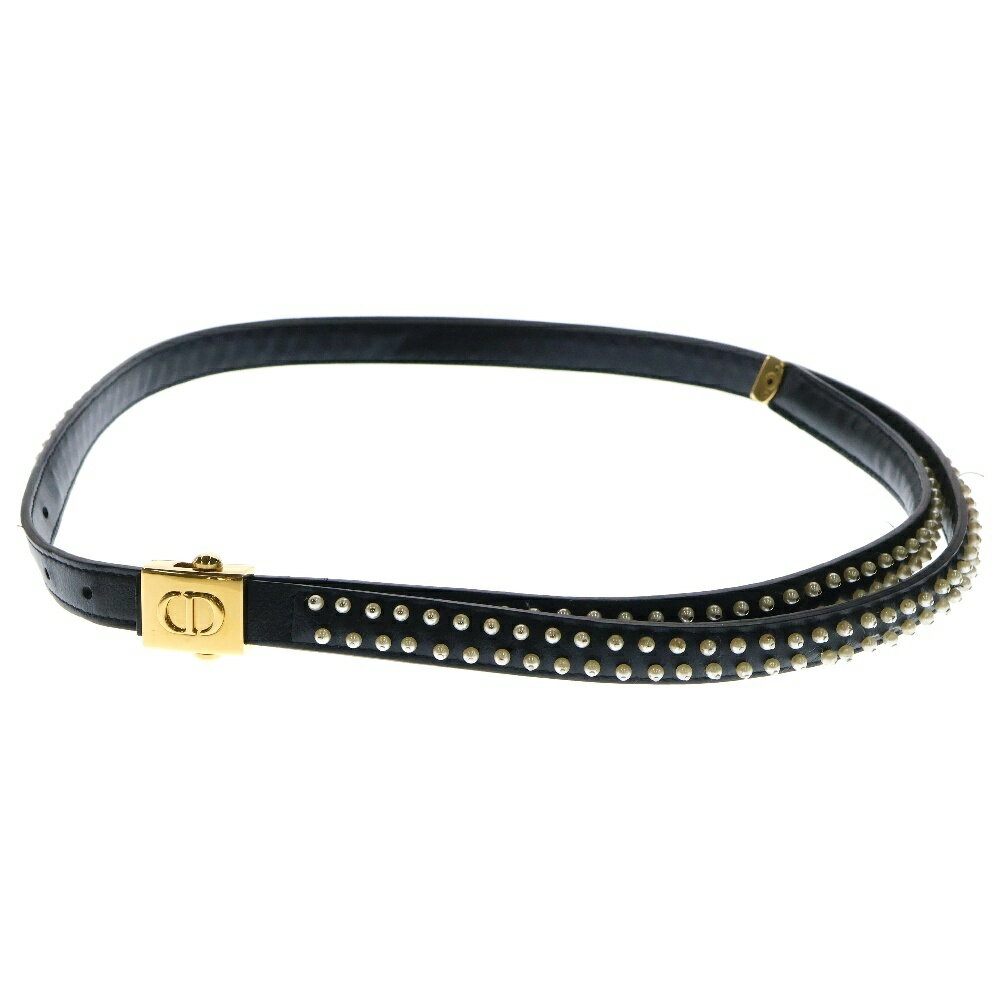 Christian Dior(クリスチャンディオール) ロゴ ベルト ブラック フェイクパール レザー ゴールド金具【中古】【程度B】【カラーブラック】【オンライン限定商品】