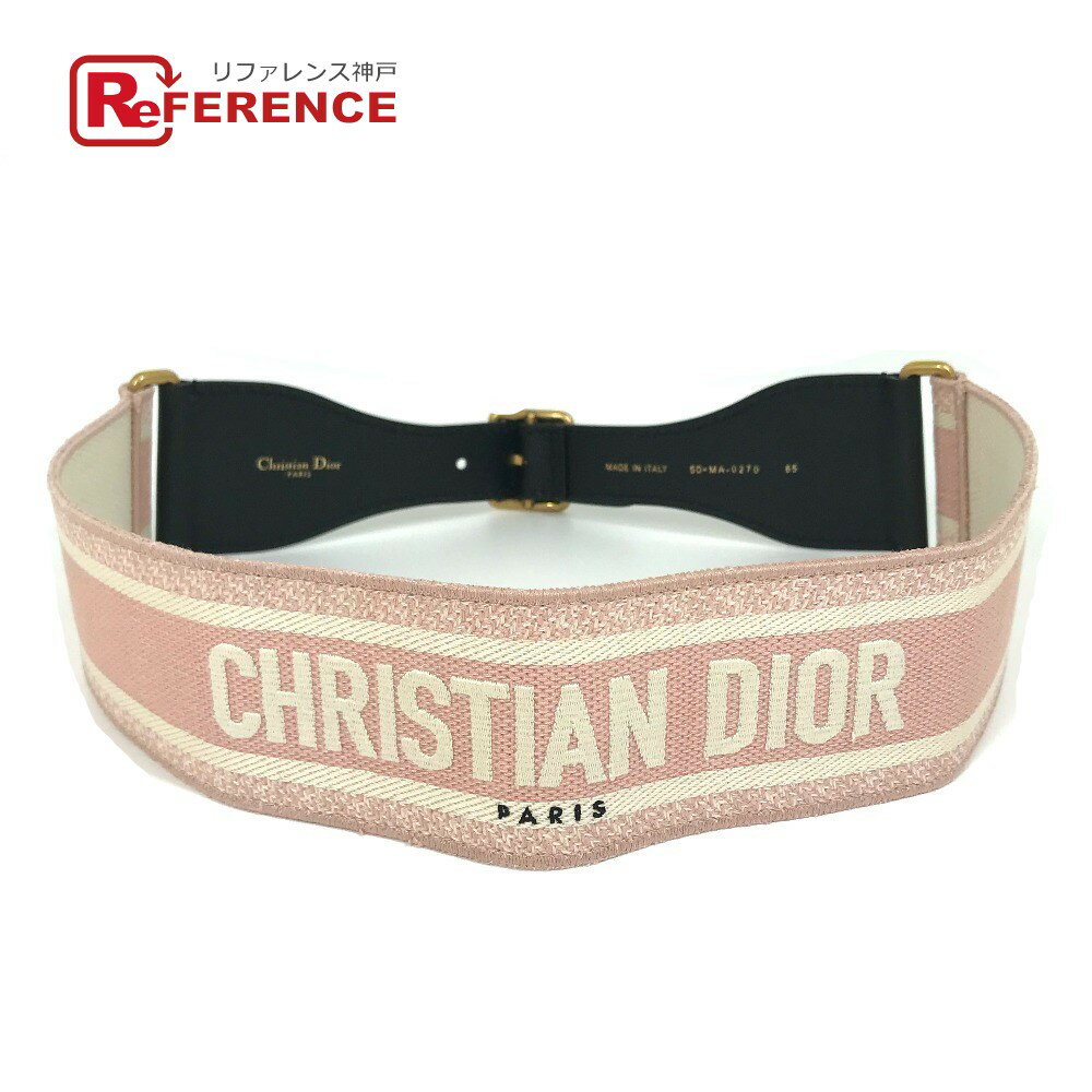 Dior ディオール エンブロイダリー ロゴ 太ベルト 幅広 ズボン用ベルト ベルト キャンバス/レザー /GP レディース ピンク 【中古】