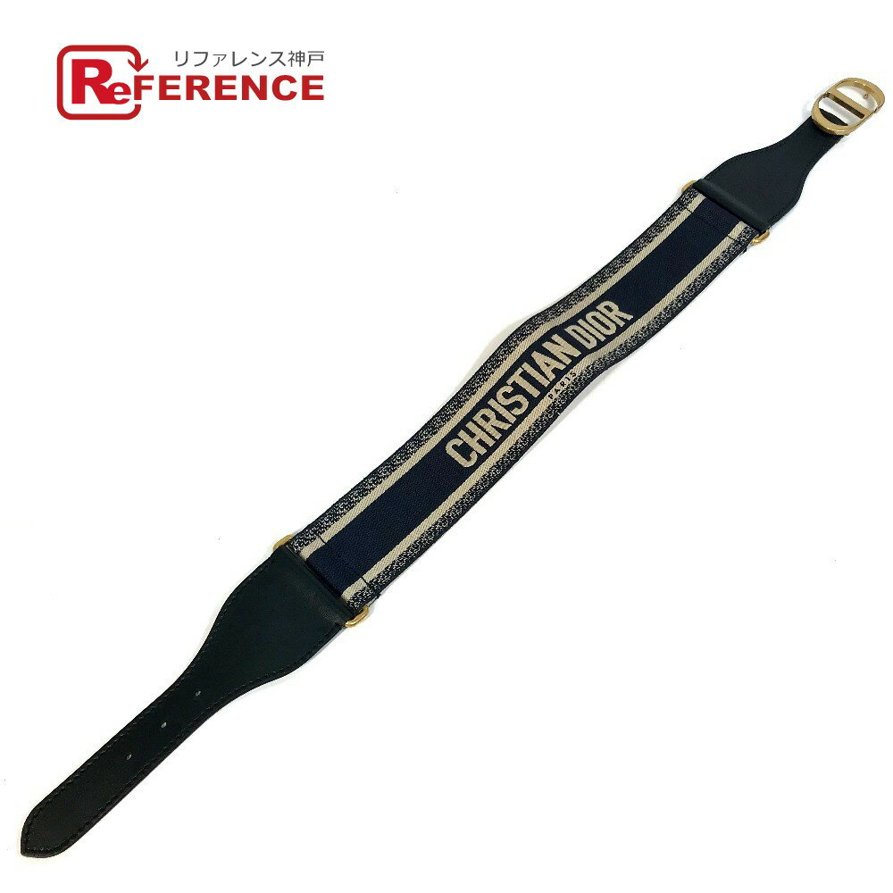 Dior ディオール B0003CBTE_M928 CD金具 エンブロイダリー キャンバス ロゴ ズボン用ベルト ベルト コットン /レザー レディース ネイビー×ベージュ 【中古】