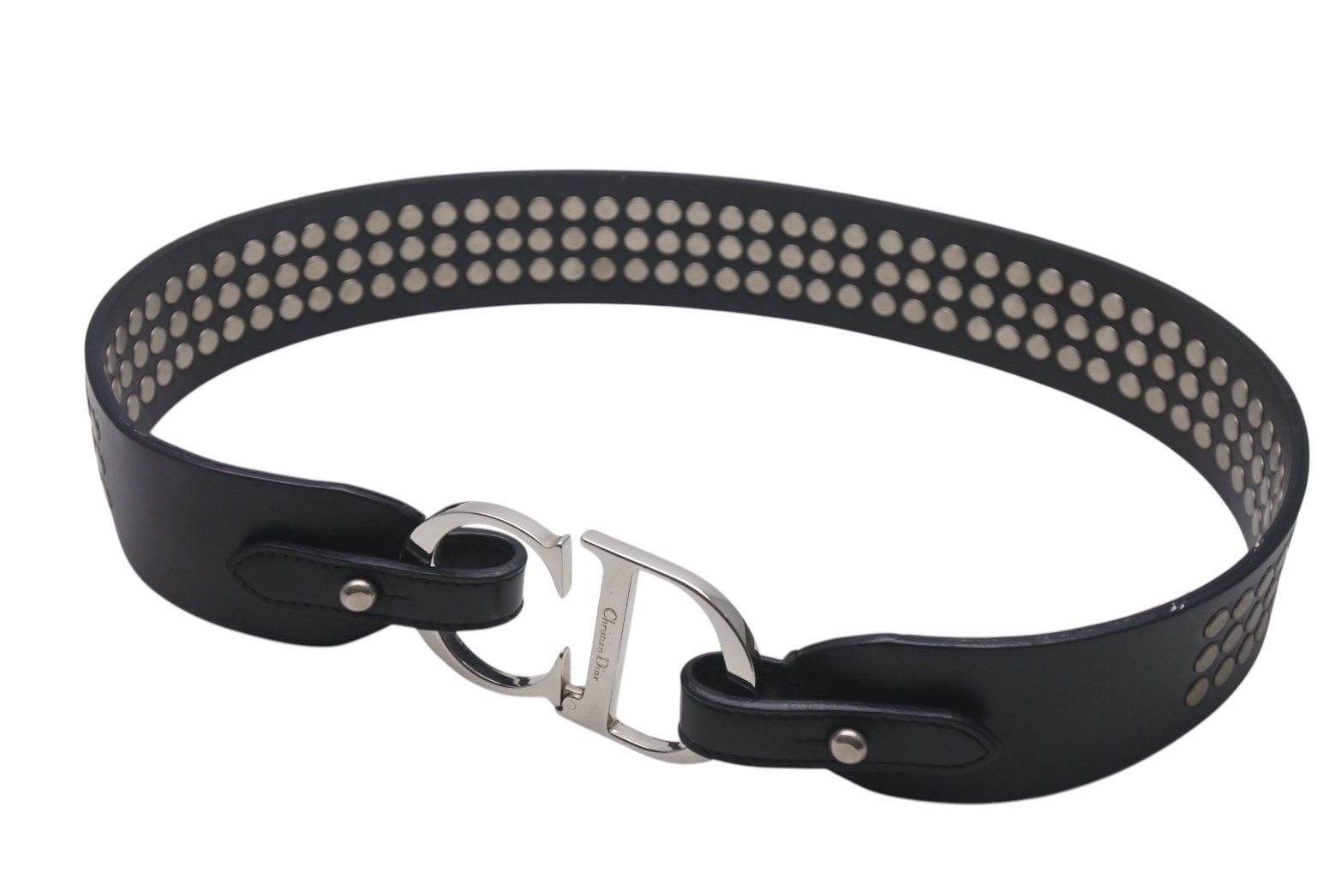 Christian Dior クリスチャンディオール ロゴ レザー スタッズ ベルト RE0072 小物 ブラック 美品 中古 4c076334