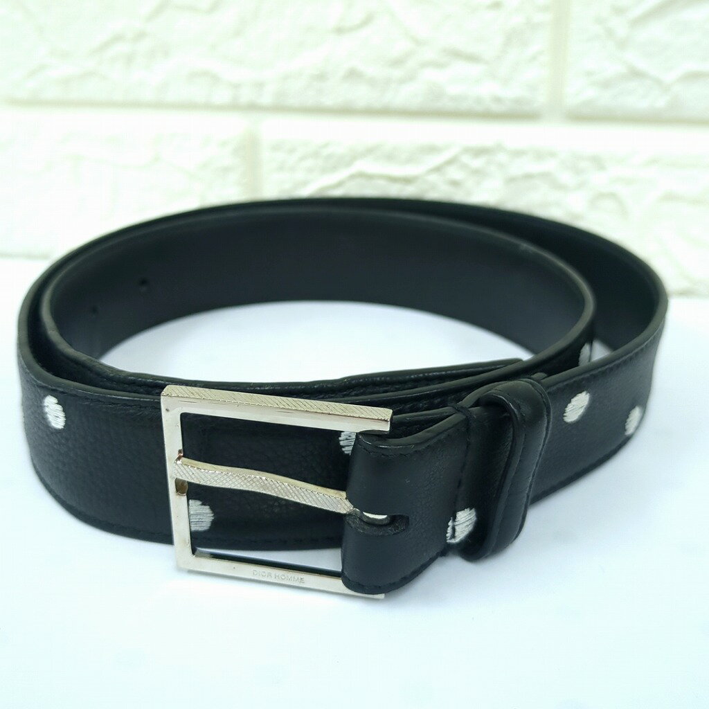 DIOR ディオール オム ドット刺繍レザーベルト メンズ サイズ90 イタリア製【中古】Cランク ギフト プレゼント