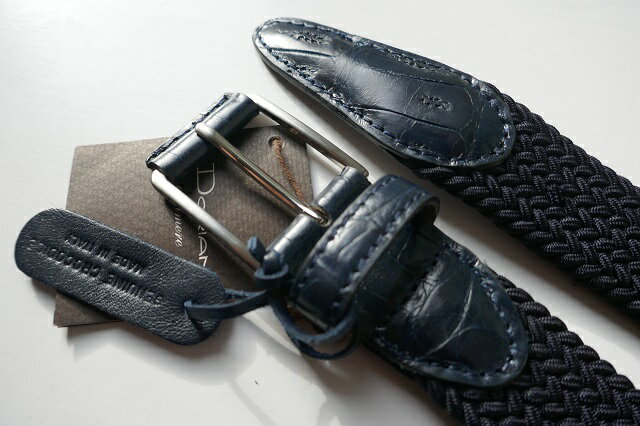 DORIANI【ドリアー二】は1930年、もともとは北伊イタリアで高級衣料(仕立て屋向け高級衣料)用とイタリア海軍用の制服パーツとしてのベルト、ストラップを製造するファクトリーとして創業。やがてそのノウハウをいかしレインコート、コートの製造開始しイタリア全土に取引先を拡大していきました。戦後、社名はそれまでのイメージを一新すべく「STORM」に変更され、さらなる富裕層向けオリジナルブランド「STORM」を展開し、ミラノ中心部に豪華な内装と広い売り場面積をもつフラッグショップを出店。 また70年代になると彼らは英国スタイルにインスピレーションを得たトータルファッションでラグジュアリーなメンズブランド、DORIANIを展開。 なかでもカシミアニットのラインはDORIANIのコレクションの中心でその選りすぐられた高品質素材と都会的なデザインで評判となりました。 現在もイタリアを始めとするヨーロッパ富裕層中心に世界的に高い評価を得ています 素材: レザー部分はクロコダイルレザー100% メッシュ部分45%ビスコース55%ゴム 生産国:MADE IN ITALYベルト幅3.5センチ 厚さ7mm サイズ:バックル付け根部分から先端までの長さは80サイズで88.5センチ85サイズで93センチ90サイズで98センチ95サイズで100センチ100サイズで107.5センチ 商品は太陽光差し込む屋内自然光で撮影しております。この商品は弊社が直接輸入しております。*当店は正規楽天市場オンラインショップと兵庫西宮市の実店舗のみの販売です。怪しい通販業者が当店楽天ショップ画像文章管理者名を無断使用し、なりすまし販売している場合があります。当店と全く関係ありませんのでくれぐれも御注意くださいませ。