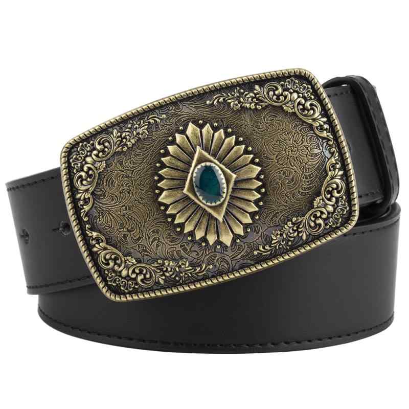 ベルト 男女兼用 ユニセックス 欧米風 レトロ ヴィンテージ カウヘッド ビッグバックル 不規則デザイン フェイクレザー 合皮 デニム ジーンズ ダークブラウン グレー カジュアル
