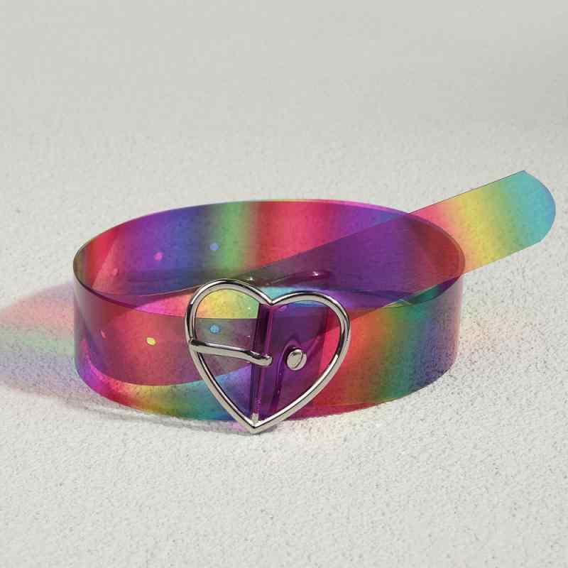 ベルト レインボー PVC 透明 ハートバックル レディース カジュアル おしゃれ かわいい 春夏 フリーサイズ アクセサリー