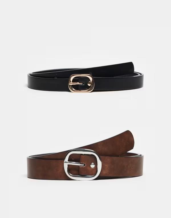 エイソス レディース アクセサリー ベルト ジーンズ ASOS DESIGN waist and hip 2 pack skinny and wide jeans belt and chocolate Multi マルチカラー