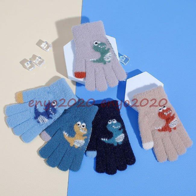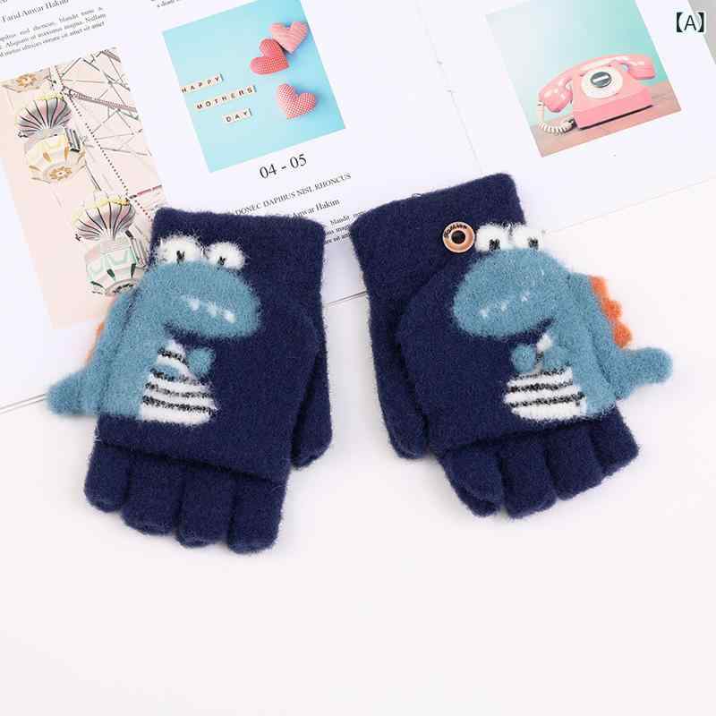 手袋 メンズ 冬 防寒 ニットグローブ 子供の かわいい 恐竜の ニット 防寒 保温 手袋 男の子 半分の 指の カバーの タッチ パネルの 冬 ニットの 新型