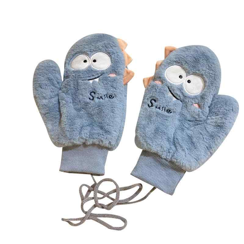 手袋 指なし ミトン レディース 暖かい 厚手 裏ボア 冬用 紐付き 首掛け 柔らかい もこもこ かわいい 恐竜 防寒 保温 韓国 フリーサイズ ユニセックス カップル ピンク 白 青