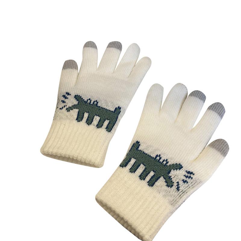 手袋 レディース スマホ対応 暖かい 冬 ニット ウール 防寒 保温 5本指 かわいい 小さい 恐竜 通学 フリーサイズ ユニセックス カジュアル
