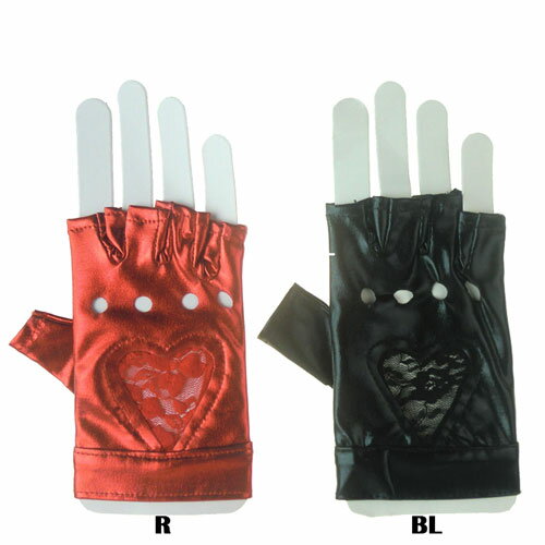 光沢生地 ハート 模様 レース指なし 合皮 手袋 マジックテープ手の甲周り18cm フェイク レザー生地 伸縮 大人 女性 子供 ジュニアおしゃれで 可愛い娘 の ハロウィン コスプレ仮装 職場 での 余興 用 イベント ライブ 文化祭 生徒 発表会